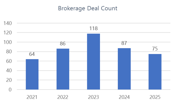M&A activity in the Canadian insurance brokerage industry slowed in 2025, but the headline numbers only tell part of the story. 75 transactions were publicly announced during the year, the lowest level since 2022. This reflects a market that has become more selective, with fewer high-quality brokerages available and more discipline around what buyers are willing to pursue.