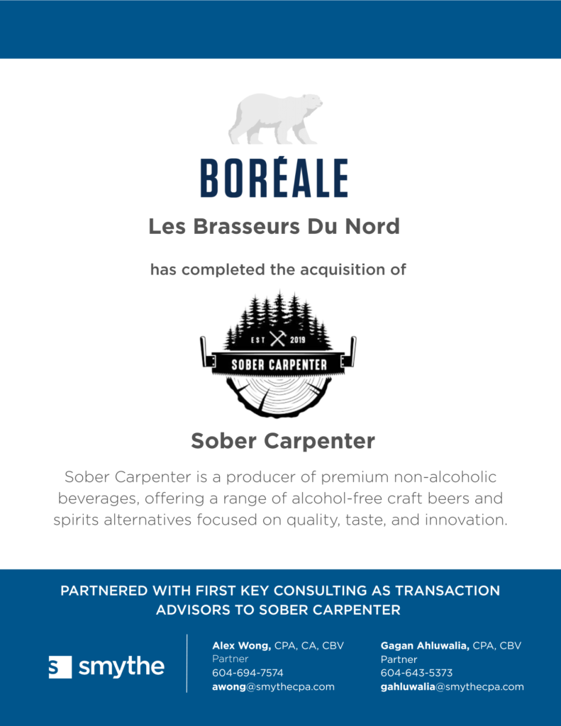 Acting as transaction advisors to Sober Carpenter in partnership with First Key Consulting, the Smythe Advisory team is pleased to announce its sale to Les Brasseurs du Nord (Boréale).